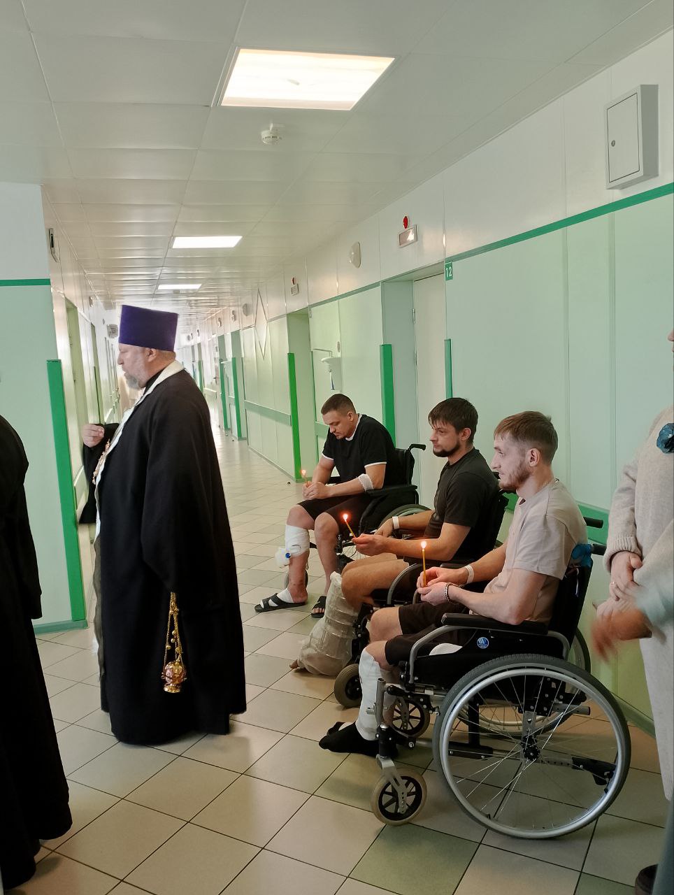 В настоящий момент в Центре Илизарова проходят лечение последствий боевой травмы 29 бойцов, часть из них приняли участие в молебне.