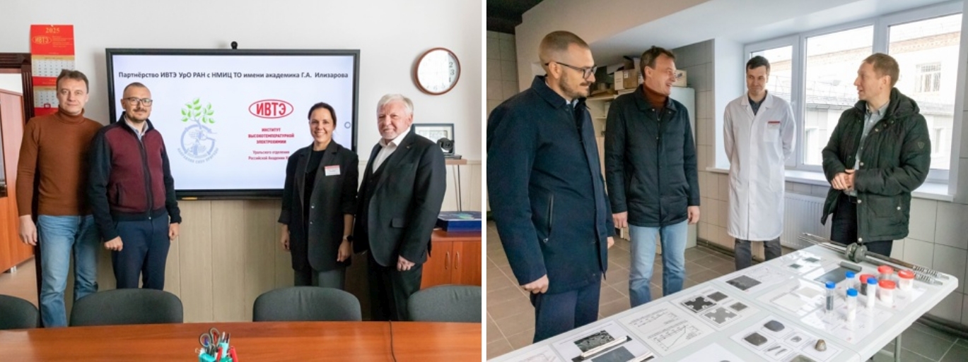 В ходе встречи обсуждались перспективы открытия представительства НМИЦ ТО им. Г.А. Илизарова на базе поликлиники ИВТЭ УрО РАН, производства медицинских керамических изделий; совместные публикации в научных журналах, участие в юбилейных мероприятиях в Кургане в 2026 году, приуроченных к 105-летию со Дня рождения Г.А. Илизарова.