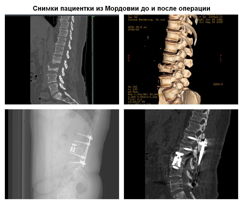 Второй случай, заслуживающий внимания, это история пациентки из Мордовии. У женщины наряду с гнойным процессом в позвоночнике сопутствующие патологии: сахарный диабет, избыточная масса тела, сердечно-сосудистое заболевание. В Центр Илизарова ее госпитализировали также в лежачем положении на санитарном транспорте. Но причина была не в параличе, а в выраженном болевом синдроме. Инфекция полностью съела несколько позвонков в поясничном отделе, это не позволяло пациентке безболезненно вертикализироваться. Ее взяли на лечение в гнойное отделение №3 также после телемедицинской консультации.