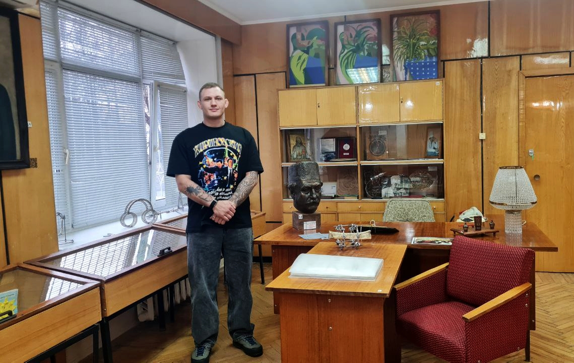 В рамках спортивного визита в Курган 5 декабря известный тренер и спортсмен по бразильскому джиу‑джитсу Михаил Панков посетил Музей Центра Илизарова.