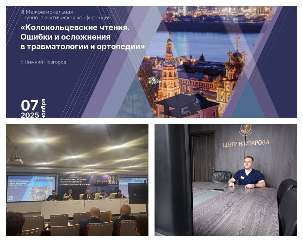 Артем Михайлович поделился с коллегами опытом лечения костно-суставной инфекции посттравматической этиологии в Центре Илизарова. Традиционно конференция проходит в память о выдающемся хирурге, изобретателе, спортсмене, почетном гражданине Нижнего Новгорода Михаила Вениаминовича Колокольцева.