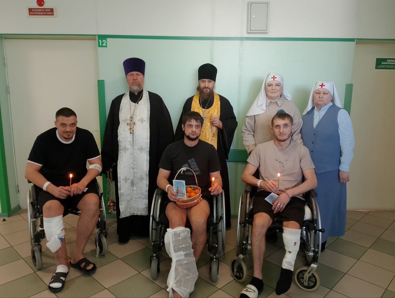 В настоящий момент в Центре Илизарова проходят лечение последствий боевой травмы 29 бойцов, часть из них приняли участие в молебне.