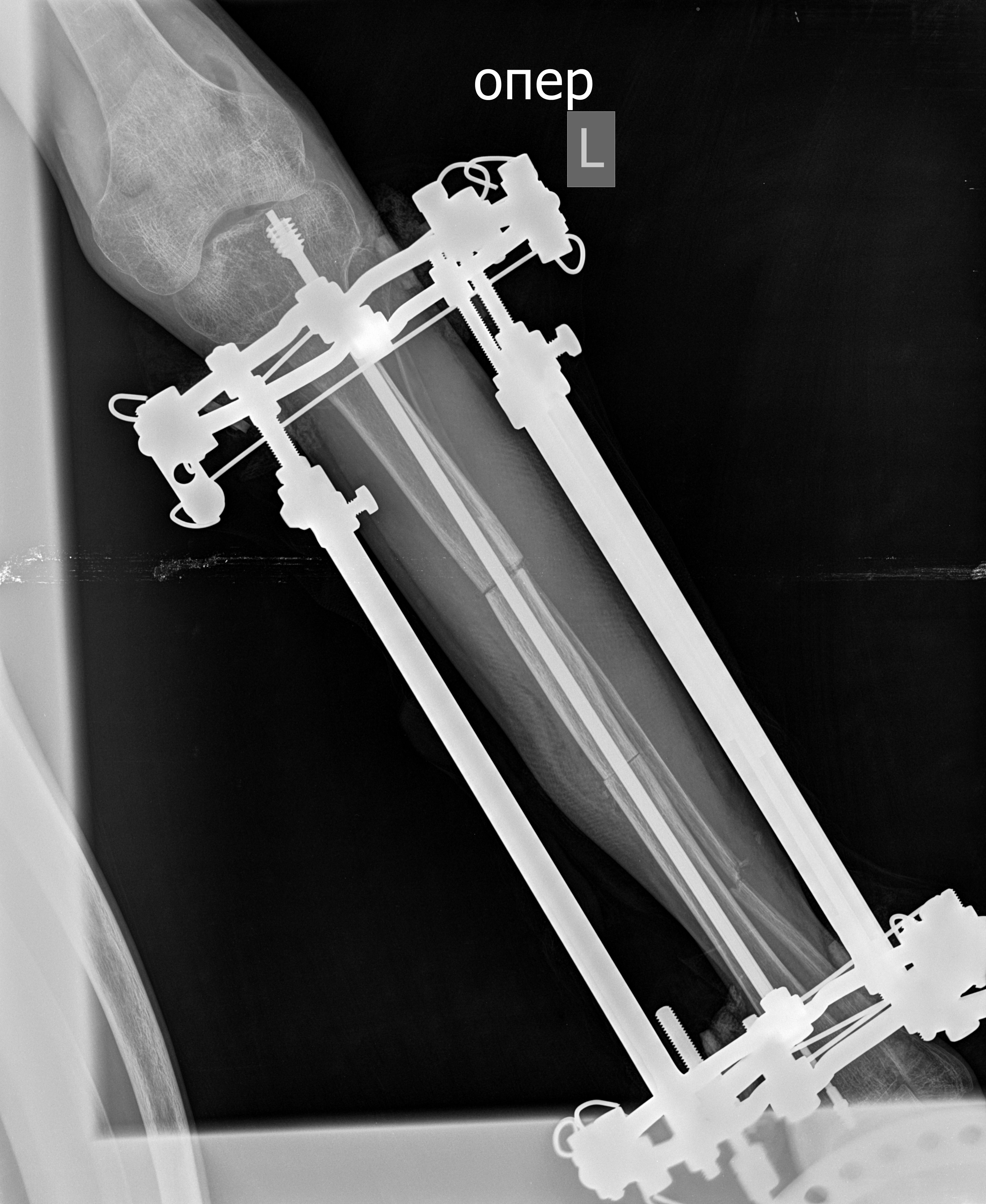 «К моменту поступления у пациента ярко выраженная антекурвационная саблевидная деформация обеих голеней. Первым этапом мы одномоментно выполнили ему корригирующую остеотомию костей левой голени на двух уровнях, устранены деформации. Проведен интрамедуллярный остеосинтез телескопическим стержнем. Из-за особенностей заболевания, пациенты с несовершенным остеогенезом имеют очень узкий костномозговой канал, поставить взрослый стержень с блокированием не получится, мы используем детские варианты, - отметила лечащий врач пациента, Алёна Воробьева, - также пациенту для дополнительного армирования костей конечности поставили аппарат Илизарова. Сейчас мы начинаем постепенно его вертикализировать».